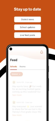 DISTRICT UPDATES In the Live Feed is where you'll find updates from the administration about what's going on in the district right now. Whether that's celebrating a student's success, or reminding you about an upcoming deadline.