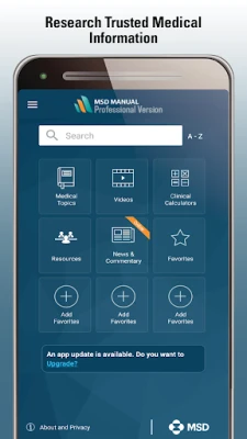 The MSD Manual Professional App provides health care practitioners and students with clear, practical explanations for thousands of conditions in all major medical and surgical specialties. It covers etiology, pathophysiology, and options for evaluation and treatment.