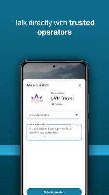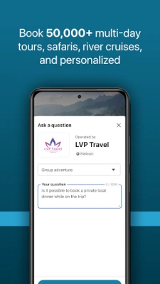 Let our tour operators be your travel planner. Each operator is an expert travel itinerary builder, so all you need to do is decide what type of tour you want (hiking, safari, bicycle, sailing, and more!), find the best price, and let them handle the rest. Everything you need for planning your perfect tour is just a tap away.